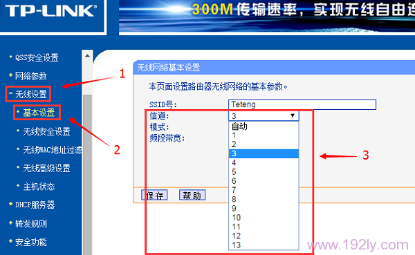 進(jìn)入無線路由器設(shè)置界面,在“無線設(shè)置”——>“基本設(shè)置”中手動(dòng)調(diào)整“信道”的數(shù)值,可選范圍為1至13,推薦選用1、3、6、9之一。