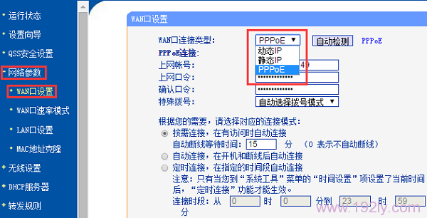(1)、在“WAN口連接類型”的旁邊有一個自動檢測選項(xiàng),即讓路由器自動檢查并選擇上網(wǎng)方式。不建議使用此功能,因?yàn)橛袝r路由器可能會誤判,選擇錯誤的上網(wǎng)方式。