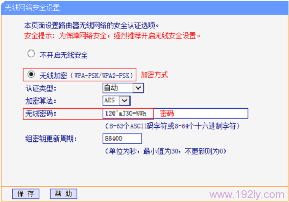 登錄到無線路由器的管理界面,找到并點(diǎn)擊“無線設(shè)置”——>“無線安全設(shè)置”——>選擇“WPA-PSK/WPA2-PSK”加密方式——>設(shè)置一個(gè)復(fù)雜的“無線密碼”(部分路由器稱為PSK密碼)——>點(diǎn)擊“保存”。