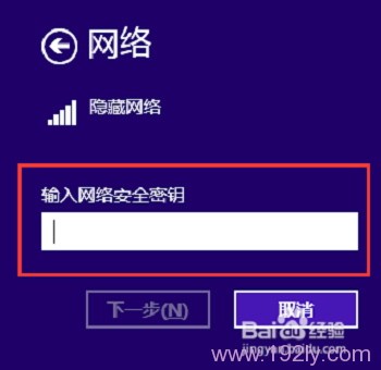 5、接著,在“輸入網(wǎng)絡(luò)安全密鑰”部分輸入隱藏WiFi的密碼,最后點(diǎn)擊“下一步”。