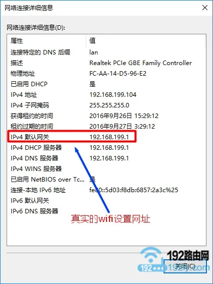 若已完成上述步驟仍無(wú)法訪問(wèn)WiFi設(shè)置頁(yè)面,可能是路由器的設(shè)置網(wǎng)址已被修改。此時(shí),可通過(guò)檢查電腦的IP地址信息找到新的設(shè)置網(wǎng)址。電腦顯示的“IPv4 默認(rèn)網(wǎng)關(guān)”地址即為有效的WiFi設(shè)置網(wǎng)址,如下圖所示。隨后,在瀏覽器中輸入此地址即可進(jìn)入設(shè)置頁(yè)面。