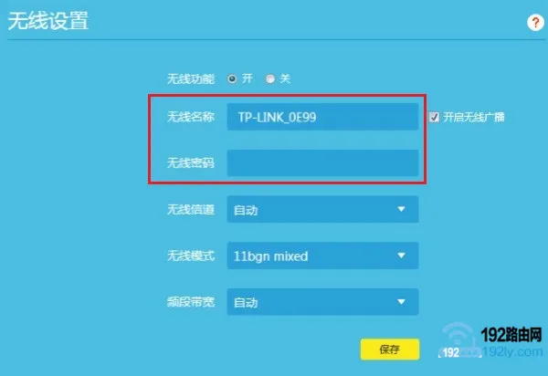 利用電腦訪問(wèn)路由器2的管理界面,進(jìn)入“無(wú)線設(shè)置”選項(xiàng),設(shè)定“無(wú)線名稱(chēng)”和“無(wú)線密碼”。
