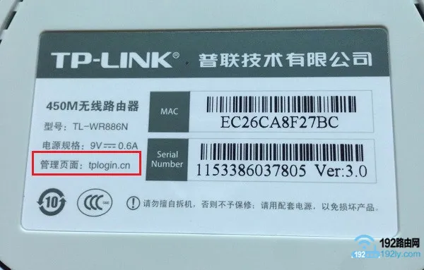 設置網(wǎng)址,也就是路由器設置界面的一個地址,可以是一個網(wǎng)址或者是IP地址。這個參數(shù)可以在這臺路由器底部標簽中查看到,如下圖所示。新版TP-Link路由器的設置網(wǎng)址是:tplogin.cn