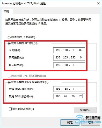 如果電腦中的IP地址,是設置成靜態(tài)IP,如下圖所示。說明你們公司內(nèi)部網(wǎng)絡使用的是靜態(tài)IP,這時候請先記錄下電腦中的IP地址、子網(wǎng)掩碼、網(wǎng)關、DNS服務器信息。