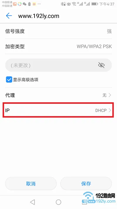 當(dāng)手機(jī)連接WiFi上網(wǎng)時,建議將手機(jī)的IP地址設(shè)置為DHCP模式,如下圖所示。