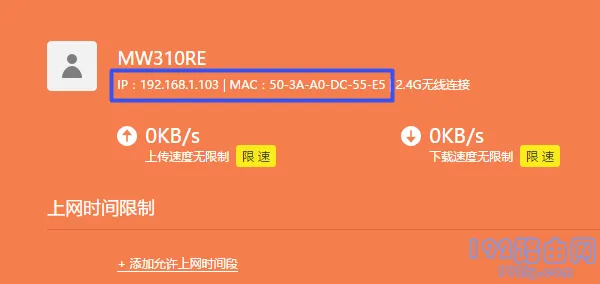 3、如果設(shè)置了無線橋接后忘記了副路由器的IP地址,此時(shí)可以從主路由器的設(shè)置頁面中的已連接設(shè)備列表中查找副路由器的IP地址,如下圖所示。
