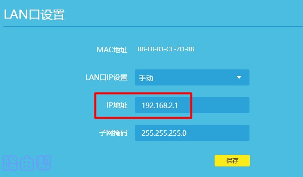 如果第一個(gè)路由器的LAN口IP地址是:192.168.3.1;則第二個(gè)路由器的LAN口IP地址,請(qǐng)?jiān)O(shè)置成:192.168.3.2。
