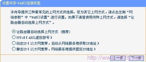 4、選擇上網(wǎng)方式:依據(jù)個(gè)人寬帶連接類型確定,多數(shù)家庭采用PPPOE方式,因此請(qǐng)選擇“PPPOE(ADSL虛擬撥號(hào))”并點(diǎn)擊“下一步”。