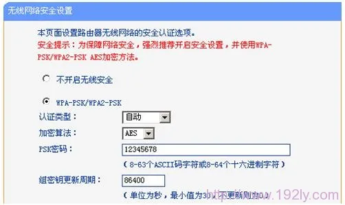 點(diǎn)擊“無線設(shè)置”–>“無線安全設(shè)置”,查看無線加密方式和PSK密碼,并記錄下來,如下圖所示: