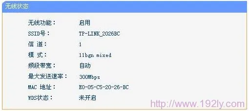 登錄TL-WR941N管理界面–>點(diǎn)擊“運(yùn)行狀態(tài)”–>查看無線狀態(tài)下的設(shè)備信息,記錄無線網(wǎng)絡(luò)的SSID號(hào)和MAC地址,如下圖所示: