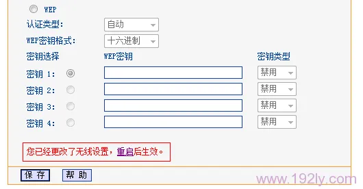2、點擊頁面底部的“保存”按鈕,系統(tǒng)會彈出提示:“您已更改無線設(shè)置,重啟后生效”——>點擊“重啟”繼續(xù)下一步。