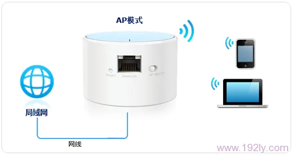 TP-Link TL-WR706N路由器以“AP:接入點模式”運行的網(wǎng)絡(luò)架構(gòu)示意圖