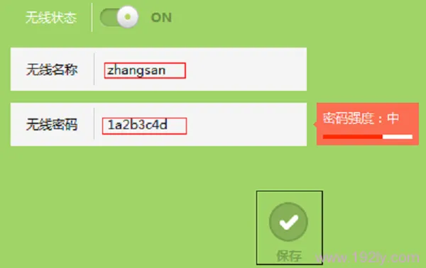 2、設(shè)定“無(wú)線名稱”和“無(wú)線密碼”,完成后點(diǎn)擊“保存”。詳情如下圖所示。