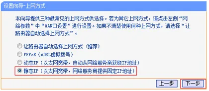 舊版本TL-WR886N,上網(wǎng)方式選擇:靜態(tài)IP