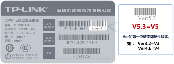 您可以在TL-WR886N路由器底部的標(biāo)簽上找到Serial Number 中的 Ver(即Version/版本)信息,以此確定硬件版本。如下圖所示: