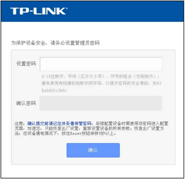 執(zhí)行恢復(fù)出廠設(shè)置操作后,再次在瀏覽器中訪問192.168.1.1頁面時(shí),會自動彈出創(chuàng)建管理密碼的窗口,此時(shí)可以重新設(shè)置一個管理密碼。