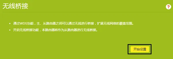 進(jìn)入無(wú)線橋接設(shè)置向?qū)Ш?,點(diǎn)擊“開(kāi)始設(shè)置”,如下: