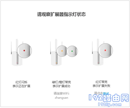 指示燈綠色或橙色常亮,表明TL-WA933RE擴展器設(shè)置成功