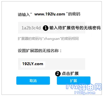 在頁面中,輸入被擴展無線信號的密碼,如下圖所示。
