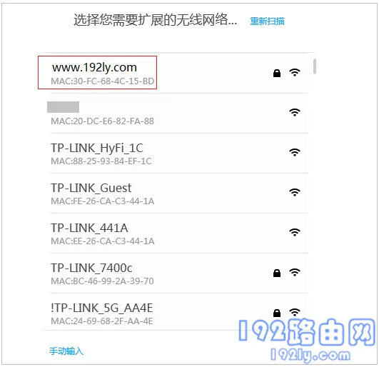 從掃描到的無線信號列表中,選擇需要擴展的無線信號。
