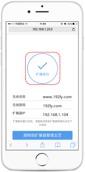 等待幾秒鐘,當(dāng)頁面上出現(xiàn):已擴(kuò)展  或 擴(kuò)展成功 的提示時(shí),表明TL-WA932RE擴(kuò)展器設(shè)置成功了。