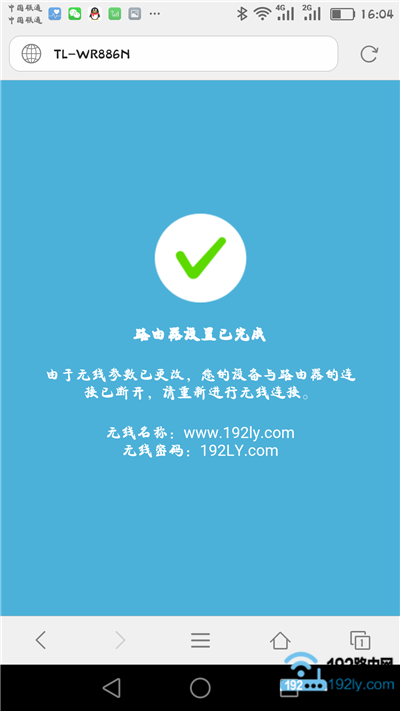 此時(shí),頁(yè)面會(huì)展示上一步設(shè)置的無(wú)線名稱和密碼,并提示需重新連接無(wú)線信號(hào)。