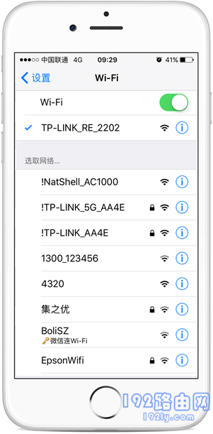 2. 將tplink放大器插上電源,然后用手機連接到它的默認WiFi信號,如下圖所示。