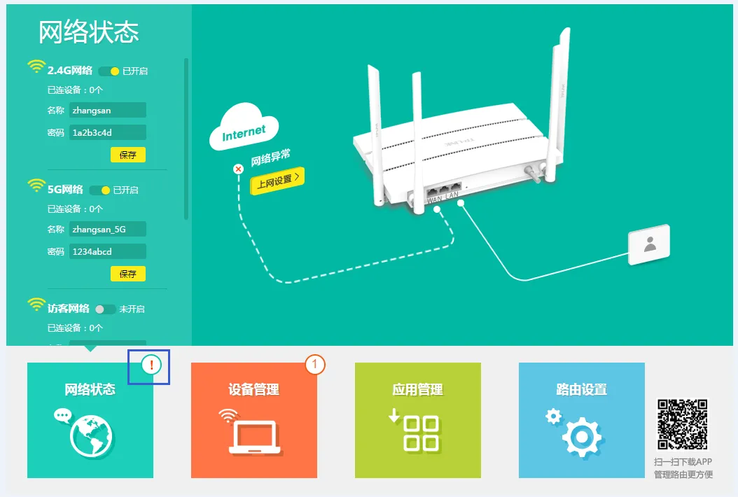 TP-Link路由器網(wǎng)絡(luò)狀態(tài)顯示感嘆號(hào),檢查網(wǎng)絡(luò)連接。