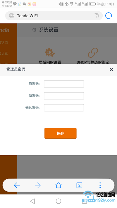 2、從手機(jī)瀏覽器訪問192.168.0.1