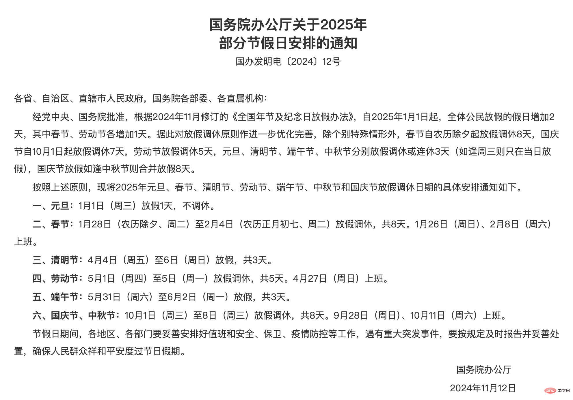 根據(jù)2024年11月修訂的《全國年節(jié)及紀(jì)念日放假辦法》,元旦作為全體公民放假的節(jié)日,規(guī)定放假1天。2025年元旦放假安排為1月1日(周三)放假1天,不調(diào)休。這是國家統(tǒng)一的放假規(guī)定,所以元旦只放一天假。