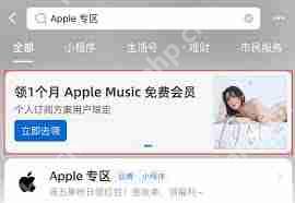 2. 在搜索框中輸入“apple music”,點擊搜索結果中的“apple music”卡片,進入專區(qū)。