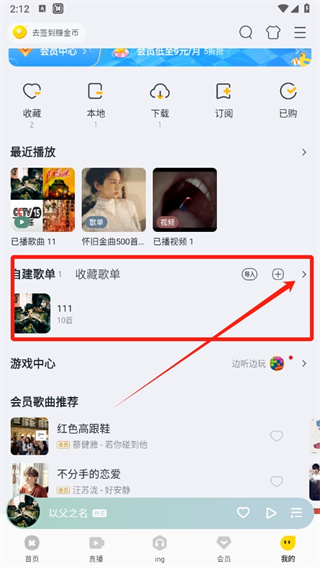 2、在我的頁(yè)面中,用戶會(huì)看到自己創(chuàng)建的歌單列表,點(diǎn)擊“歌單列表”。