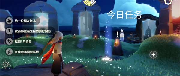 光遇今日的任務(wù)地圖是在雨林,玩家可以先在星盤和好友送心,再前往雨林的秘密花園完成冥想,再通過秘密花園直接抵達(dá)雨林的水母圖,找到需要重溫的先祖完成任務(wù),最后再去往暮土掀翻螃蟹即可。
