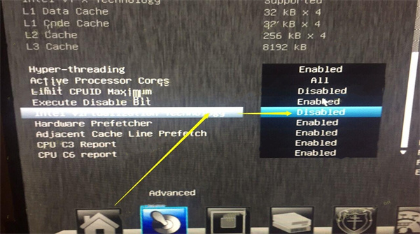 3、找到“Intel(R) Virtualization Technology(虛擬化技術(shù))”選項,把“Disabled”都修改為“Enabled”或者“禁用”修改為“啟用。