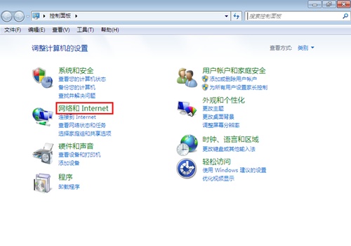 2.選擇“網(wǎng)絡(luò)和Internet”選項(xiàng)