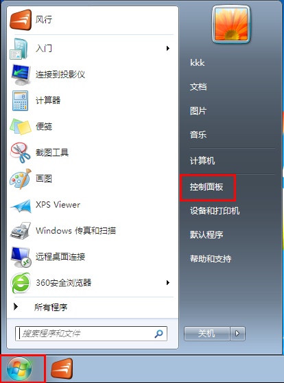 1.點(diǎn)擊左下角的開始菜單,選擇“控制面板”