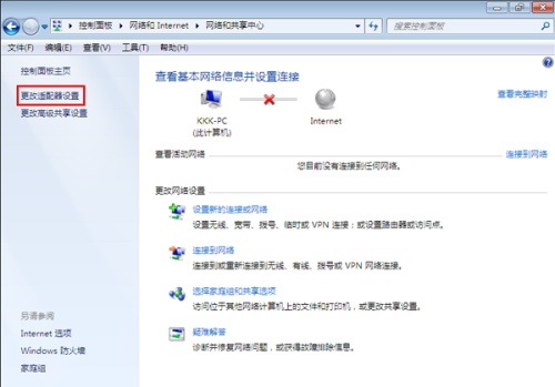 4.此時會打開如下界面,在左邊目錄中,選擇“更改適配器設(shè)置”選項(xiàng)