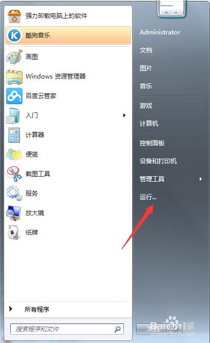 1、打開電腦左下角的開始菜單,然后在右方列表中找到【運行】選項