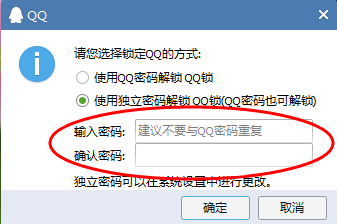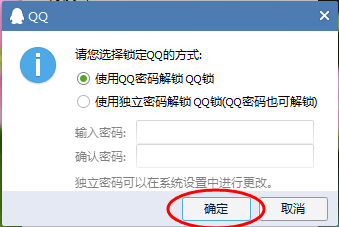 3、可以直接選擇登陸QQ密碼進(jìn)行鎖定,再點擊確定