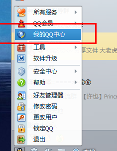 1、我們打開自己的QQ,然后切換到QQ的功能主菜單頁面,選擇“我的QQ中心”。