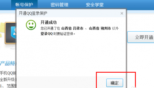 7、驗證之后,系統(tǒng)提示我們,QQ登陸保護(hù)已經(jīng)開通,在規(guī)則列表之外的地方登陸QQ將會要求我們驗證動態(tài)口令,在最大程度上提升我們的QQ的安全性。