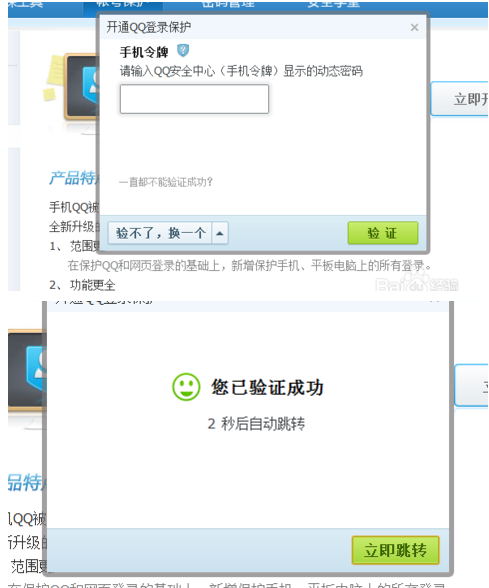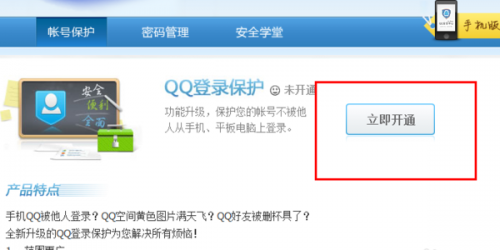 3、點擊“開通保護(hù)”,然后我們將跳轉(zhuǎn)到另一個QQ登錄保護(hù)的功能頁面,然后我們點擊“立即開通”。