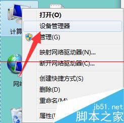 4、刪除完畢,我們回到桌面,右鍵點(diǎn)擊【計(jì)算機(jī)】選擇【設(shè)備管理器】選項(xiàng)點(diǎn)擊打開(kāi)。