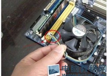 3、接著再拔掉風(fēng)扇與主板的電源線