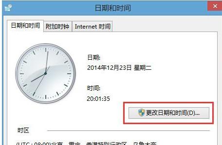 2.在接下來(lái)彈出的日期和時(shí)間的設(shè)置窗口中,我們將界面切換到日期和時(shí)間這一欄,然后點(diǎn)擊窗口中的“更改日期和時(shí)間”。