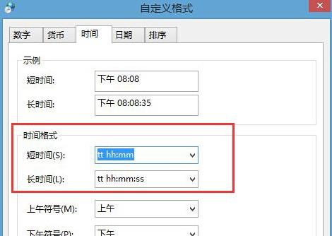 3.之后會(huì)彈出一個(gè)新的設(shè)置窗口,我們點(diǎn)擊窗口下方的“更改日歷設(shè)置”,在出現(xiàn)的自定義格式窗口中,我們將界面切換到時(shí)間這一欄中,就可以對(duì)顯示進(jìn)行設(shè)置了,如下圖中所示,我們可以看出其中 h/H 代表 12小時(shí)制/24小時(shí)制,而“tt”則代表上午下午我們只需要在時(shí)間格式處將短時(shí)間設(shè)置為:tt hh:mm 長(zhǎng)時(shí)間設(shè)置為 tt hh:mm:ss即可