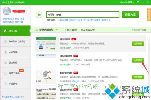 5、添加好了會出現(xiàn)“360人工服務(wù)”,先在左邊點(diǎn)擊“熱門工具”,在點(diǎn)擊“網(wǎng)頁打開慢”;