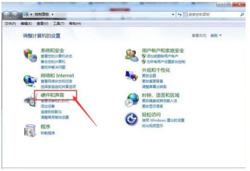 ①選擇”控制面板“,在里面找到”硬件和聲音“。