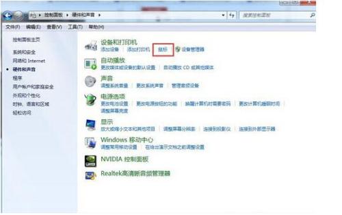 ②在“硬件和聲音”窗口,點擊進去后,找到“鼠標”。