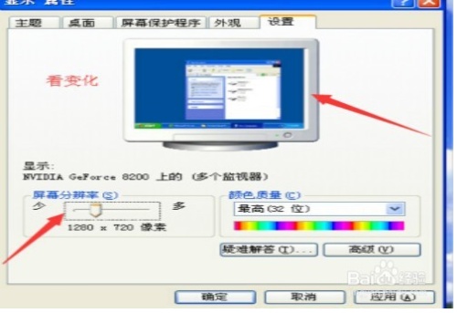 2、第二步,移動(dòng)中間的方條,可以左右移動(dòng)的,移動(dòng)的時(shí)候,上面會(huì)有預(yù)覽,就是電腦桌面的變化情況。